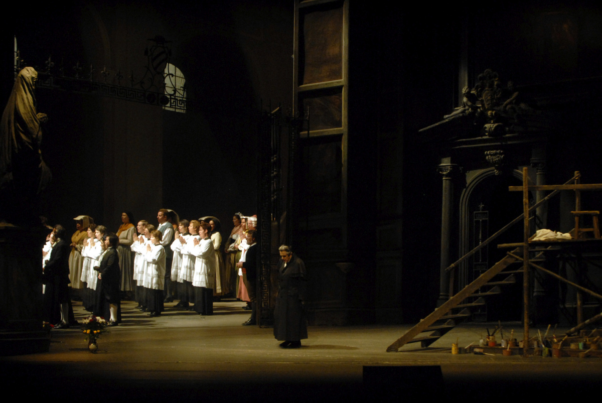 Nicht nur das Publikum, auch die Sänger lieben die Produktionen, die exakt im Jahr 1800 und in Rom angesiedelt sind, einen Besuch in der italienischen Hauptstadt, zumindest, was den Besuch von Sant’Andrea della Valle, des Palazzo Farnese und der Plattform der Engelsburg betrifft, ersparen, in denen Empirekostüme und weder SS-Uniformen noch 1950er-Jahre-Kostüme getragen werden, L’Attavanti in ihr Gemälde gebannt bleibt und Tosca nicht ihr Hinterteil zum Beischlaf mit Scarpia darbieten muss (Bühne und Kostüme Filippo Sanjust).