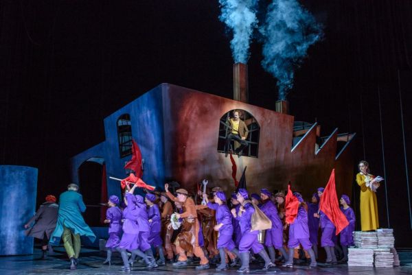 Die Theaterfassung von André Bücker und Beate Seidel mit der Musik von Stefan Lano will die Tetralogie offenbar als Komplett-Fassung spielen. Das Bühnenbild hat Jan Steigert entworfen und die Kostüme Suse Tobisch. Die Räume und Atmosphären, die dabei entstehen, schaffen ein Zeit-Colorit, das den Zuschauer hineinnimmt in diese Zeit politischer und privater Umbrüche. Der Gesamteindruck bis zur Pause ist extrem deklamatorisch. Die Schauspieler sprechen mit Mikroports, was den Agitprop-Charakter noch verstärkt. Bei den Massenszenen ist das sicher richtig, aber bei den Dialogszenen nervt es irgendwann stark. Nach der Pause wird es vor allem in den Kriegsheimkehrer-Dialogen zwischen Maus und Becker einfach menschlicher. Ihre Sorgen und Hoffnungen, ihre Versuche irgendwie wieder Fuss zu fassen,sind nachvollziehbar gespielt. Die Szenen der politischen Entwicklungen rutschen manchmal ins Klamaukafte. Die Akteure von Militär bis zu den Sozialdemokraten wirken schablonenhaft und sind es auch von Kostümen.