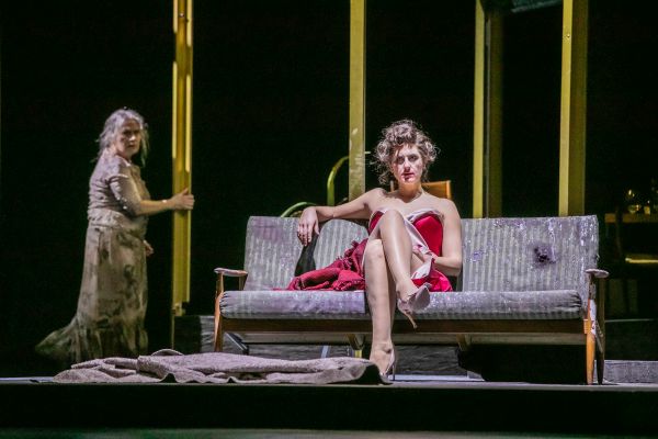 An diesem Punkt setzt nun Lotte de Beer mit ihrer Inszenierung ein. Es stellt sich zum einen die Frage, welches Interesse hat die Liebe? Ist es eher die selbstsüchtige Verfolgung eigener Zwecke, hier in Form von Alcina, die den Mann besitzen und dominieren will oder eher die reine selbstlose Liebe von Bradamante, die diese Reise in erster Linie auf sich genommen hat, um ihren Geliebten von einem bösen Zauber zu befreien? Hieran anschließend stellt sich die Frage, warum ist Alcina so geworden wie sie nun ist? Genau diese Hauptfrage wird dem Zuschauer aber leider nur etwas bruchstückhaft beantwortet. Immer wieder begegnet dem Zuschauer in der Inszenierung eine alte Frau in ähnlicher Kleidung zu Alcina. Diese wird von Angelika Richter ausdrucksstark verkörpert, am Ende bleibt sie gar einsam und verlassen auf der Bühne zurück. Ein durchaus starkes Schlussbild und der Zuschauer kann wohl erahnen, dass wir auch in der alten Dame die Zauberin erkennen können. Zudem gibt es einige junge Mädchen, die hierzu das Gegenstück bilden und denen von einigen Männern, zum Glück nur angedeutet, unschön mitgespielt wird. Gehen wir mal davon aus, dass dies die junge Alcina darstellen soll, die daraufhin Rache an der Männerwelt nehmen wollte. Fraglich bleibt dann aber doch, warum auch Alcinas Schwester Morgana teilweise ähnlich gekleidet war.