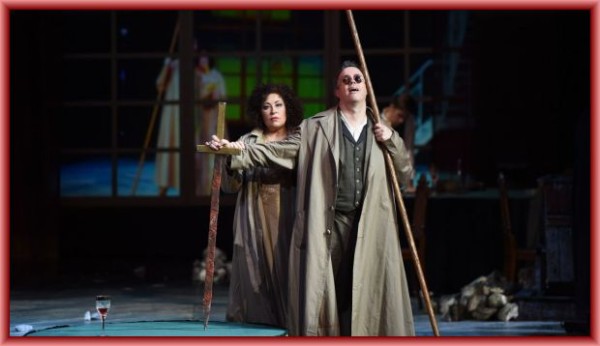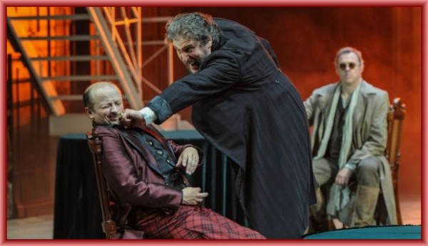 Eher schwach fällt er hinsichtlich der Inszenierung aus. Zunächst einmal: Dietrich Hilsdorf gehört fraglos zu den prägendsten Regisseuren der deutschen Theaterszene. Der Rezensent hat in Bonn sogar noch etliche seiner Arbeiten im Schauspielbereich erlebt, den er offenbar ganz zugunsten der Oper aufgegeben hat. Bei ihr hat er im Laufe der Jahre seinen inszenatorischen Stil geändert, sich vom „Revoluzzer“ zum bildästhetisch abwägenden „Altmeister“ entwickelt, um es mit zwei vielleicht etwas pauschalen Schlagworten auszudrücken. Mozart in Gelsenkirchen, Verdi in Essen – das waren Hilsdorfs gärende Jahre (das Aalto Musiktheater hat einige dieser Produktionen bis in die jüngste Zeit in Wiederaufnahmen geboten). Mit die hinreißendsten Ergebnisse aus den „milderen“ Folgejahren waren in Bonn drei Händel-Oratorien: „Jephta“, „Belsazar“ und vor allem der mirakulöse „Saul“ (u.a. mit Jörg Waschinski und Georg Zeppenfeld). Aus jüngster Zeit datieren an diesem Haus eine wunderbar durchpsychologisierte „Cosi“, freilich auch ein verquerer, angestrengter „Attila“.