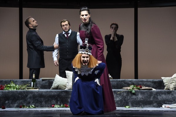 In der Titelrolle glänzt Adela Zaharia, die mich in Farbe, Ausdruck und Beweglichkeit an die junge Anna Netrebko erinnert. Scheinbar mühelos liefert die junge Rumänin halsbrecherische Koloraturen ab und verfügt überdies über eine gehaltvolle Mittellage, die dunkel timbriert ist und über große Ausdruckskraft verfügt. Ihren Gegenpart übernimmt Maria Kataeva, ebenfalls Ensemblemitglied – und auch die spart sich nichts, stattet ihren so satten wie geläufigen Mezzo von Beginn an mit bedrohlichen Farben aus, zeigt sich koloraturenfreudig und kampfeslustig und läuft im Duett mit ihrer Widersacherin im Finale des ersten Aktes, das – was für ein Glück für jeden Zuschauer – geradezu zum Duell gerät, zu Höchstform auf. Die Damenriege wird durch den viel Wärme verströmenden Mezzo von Karina Repova komplettiert, die eine hingebungsvolle Anna Kennedy ist.