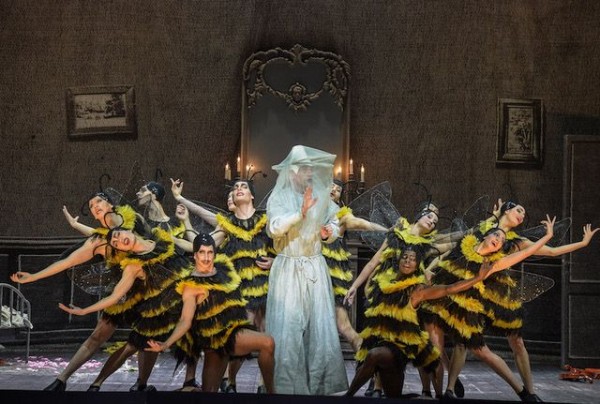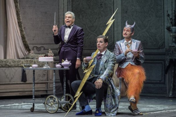 Die Deutsche Oper im Rhein bringt nun nach mehrfacher Corona-bedingter Verzögerung endlich ihren neuen „Orpheus in der Unterwelt“ auf die Bühne, eine Produktion, die bereits an der Komischen Oper Berlin und bei den Salzburger Festspielen – zurecht! – für Furore sorgte. Barrie Kosky zeichnet für diese furiose Inszenierung verantwortlich und zieht gekonnt alle Register, die es für einen gelungen Offenbach braucht: Feinsinn, Humor und eine Prise Derbheit. Bühnenbildner Rufus Didwiszus hat hierfür ein vermeintlich einfaches, aber doch raffiniertes Bühnenbild gebaut. Ein schwülstiges, aber in die Jahre gekommenes Bühnenportal, gemalte Prospekte und ein edles, fahrbares großes Sofa als Olymp sind die Versatzstücke, die dem Abend einen szenischen Rahmen geben und eine perfekte Leinwand für die bemerkenswerten Kostüme von Victoria Behr sind. Viel Farbe, Mut zu ausladenden Formen und vor allen Dingen jede Menge Glitzer – das sind die Kennzeichen dieses Kostümbildes, das die Protagonisten unglaublich raffiniert und phantasievoll einkleidet. Dabei sorgt der ein oder andere glitzernde Penis für eine amüsante frivol-erotische Note und beim Publikum für einen Lacher.
