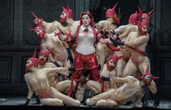In dieser Produktion ist Eurydike, die in die machomäßige Konkurrenz zwischen Pluto und Jupiter gerät, eine starke, emanzipierte Frau, die aus dem Grau des Ehealltags in der frivolen Hölle letztlich so etwas wie eine sexuelle Befreiung erfährt. Zwischen den Attitüden der sie angebeteten Männern zunächst noch hin und herschwankend, sieht man letztlich, wie sie selbst „der Mann im Haus“ wird und sie sich gegen eine patriarchalisch dominierende Männerwelt durchsetzt und ihr eigenes Ding macht. Was hier theoretisch, ja fast politisch klingen mag, kommt aber zu keinem Zeitpunkt mit erhobenem Zeigefinger daher. Im Gegenteil. Die Düsseldorfer Produktion ist eine zutiefst sinnliche und opulente, dem Revuehaften verschriebene Produktion. Leichtigkeit, Witz und Charme stehen an erster Stelle!