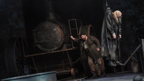 Der Fafner-Auftritt wirkt trotz des Aufwandes mit einem Riesenzug, der auf die Bühne gerollt wird, nicht wirklich spektakulär. Er ist eine Anspielung auf Emile Zolas Roman „Bestie Mensch“, wo eine führerlos gewordene Lokomotive zerstörerisch auf Paris zurast. Eine wirklich erhellende Symbolik bietet dieses Bild dem Zuschauer kaum, wie ja auch das Flugzeug in der „Walküre“ als Warnung vor überbordender Zivilisation ein ziemlich gewollter Fingerzeig ist. Dass Erda bis zu Brünnhildes Worten „Des Wissens bar“ von einem Tuch verhüllt auf ihrem Sofa ausharren muss, um sich dann warnend zu erheben, bedeutet ebenfalls keinen größeren Erkenntniszuwachs und ist zudem für die Sängerin nachgerade eine Zumutung, von Okka Von Der Damerau aber stoisch geduldet. Den vokalen Teil ihrer Partie (wohllautend, ausdrucksvoll) hat sie allerding dann schon hinter sich. So stehen sich in Hilsdorfs Inszenierung äußerst zwingende Szenen und intellektueller Kleinkram gegenüber.