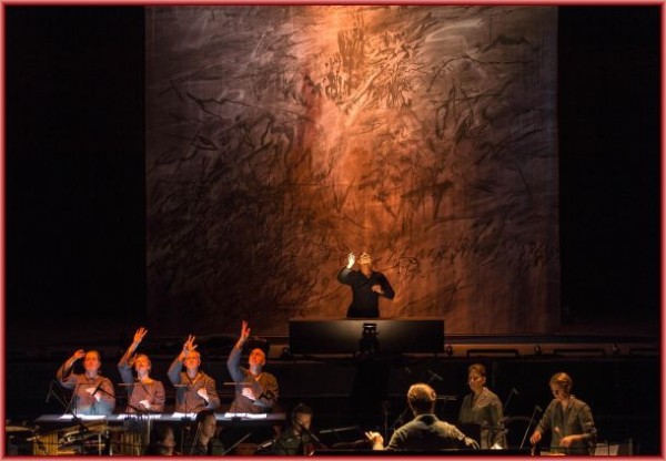 Der Abend wird mit einem Gong-Schlag eröffnet, als ob man sich in einem tibetanischen Kloster befände. Das Echo wird elektronisch verstärkt und hallt noch lange durch den Saal. Wir hören den Wind flöten und pfeifen, und kaum verständlich wird ganz leise gesprochen: die Mönche beten. Hinter den vier Sängern erscheint der Priester, doch wir erkennen nur seinen Schatten. Alles ist stark reduziert, subtil und von einer erstaunlichen Homogenität, denn das Ensemble hat sechs Wochen zusammen geprobt, und die Musiker waren immer dabei. Sellars erzählt beide Geschichten ganz „aus dem Geiste der Musik“ (wie Nietzsche es ausdrücken würde), und erst langsam erobern die beiden Sänger, aus dem offenen Orchestergraben steigend, die Vorderbühne. Erst im allerletzten Bild wird die Tänzerin die ganze Bühne bespielen. Die Identifikation aller Beteiligten mit dem Stück ist so spürbar – es scheint, dass Sellars sechs Wochen lang, jeden Tag, jeden Mitarbeiter einzeln lang umarmt hat – dass man nur den Ensemblegeist und niemanden im Besonderen hervorheben möchte.