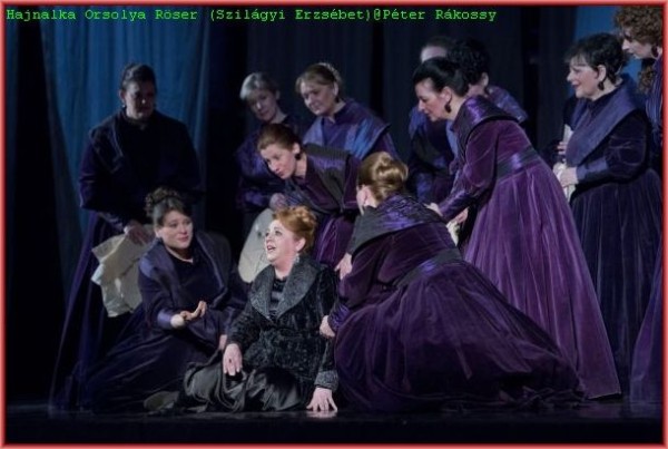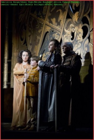 Musikalisch gesehen war die Aufführung aber ein, von wenigen Abstrichen abgesehen, höchst erfreulicher Abend. Dies ist zunächst dem Dirigenten des Abends, Péter Oberfrank, am Pult des Orchesters der Ungarischen Staatsoper geschuldet, der die farbige Pracht dieser Bel Canto lastigen und von Ungarischer Volksmusik durchzogenen Oper in allen Nuancen funkelnd erstrahlen ließ. Und auch der Chor der Ungarischen Staatsoper sang bei dieser Nationaloper unter der verdienten Leitung von Kálmán Strausz auf höchstem Niveau. Hajnalka Orsolya Rőser bot ein überwältigendes Erlebnis als Erzsébet Szilágyi. Spielerisch bewältigte sie die mit halsbrecherischen Koloraturen überreich ausgestattete Partie. Sie hielt auch eine beeindruckende Balance in der Darstellung der besorgten Mutter und ihrer Würde als Witwe des letzten ungarischen Reichsverwesers. Kinga Kriszta als Mária Gara hatte etwas weniger zu singen, aber ihre Cabaletta „Mi égi báj ez, mi pillanat, hevül a vérem, erem dagad“ (Was himmlische Freude, welcher Moment, mein Blut brodelt, meine Adern schwellen) war gleichfalls mit äußerst anspruchsvollen Koloraturen gespickt. Schade, dass Gabriella Balga mit ihrem ausdrucksstarken Mezzosopran die Hosenrolle des Mátyás nur singen durfte, sie hätte wohl auch in darstellerischer Hinsicht in dieser Produktion weitaus besser zum Einsatz gebracht werden können. Den szenischen Part des jungen Mátyás übernahm rollengerecht Dénes Végh. Attila Fekete bewies in der Rolle des Hunyadi László Stehvermögen und es gelangen ihm auch zahlreiche schöne Momente trotz oder gerade wegen seiner äußersten Kraftanstrengung. Der Tenor von István Horváth als König László V. schwächelte ein wenig, lediglich seine lyrische Cabaletta „Tündér, te bájos, szép Máriám!“ (du liebliche Elfe, meine schöne Maria!) trug er betont gefühlvoll vor. Marcell Bakonyi unterlegte seinen intriganten Ulrik Cillei mit gefälligem und gut geführtem Bassbariton. István Kovács als Palatin Miklós Gara war der Bösewicht der Oper par excellence mit seinem dunklen und eindringlichen Bassbariton. Rollengerecht ergänzten noch Sándor Egri als Mihály Szilágyi, der Bruder Erzsébets, mit seinem unverkennbaren Bass, und András Káldi Kiss als Rozgonyi, Offizier und Freund Hunyadi Lászlós mit seinem noblen Bariton.