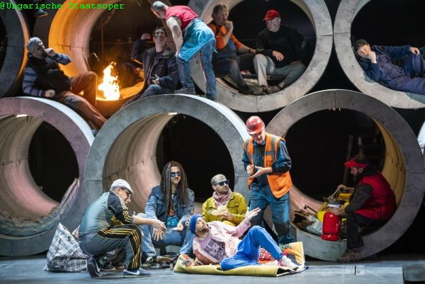 Der Regisseur verlegte nämlich die Handlung von Kalifornien nach Westeuropa, an den Rand einer Großstadt. Dort lungern in riesengroßen in drei Reihen übereinander gestapelten Betonrohren (Bühnenbild: Margolin Zinovy) illegale Einwanderer herum, deren Persönlichkeit und Herkunft durch schlichte abwechslungsreiche Kleidung (Kostüme: Olga Shaishmelashvili) bestimmt wird. Schließlich schiebt Minnie in Jeans, sehr heutig gekleidet, ihr Einkaufsfahrrad durch ein Rohr. Der Text der Oper klafft mit der Bühnenrealität sehr oft auseinander. Die Post wird den Einwanderern aber nicht durch einen Postboten zugestellt, sondern via E-Mails auf einem Laptop. In Minnies Heim tritt ihre Dienerin Wowkle als hochschwangere Muslima auf, eine, meiner Meinung nach, reichlich überzeichnete und nicht schlüssige Aktualisierung. Geradezu peinlich wirkte der rasche Umbau einer Couch in ein Doppelbett, auf das sich Minnie und Ramerrez in innigstem Vertrauen zurückziehen, es aber sogleich aus Angst vor Entdeckung ebenso rasch wieder schließen. Den größten Eingriff aber macht der Regisseur mit dem Ende der Oper. Während dort Minnie und Ramerrez gemeinsam das Goldgräber Lager verlassen, wird dieser vom Sheriff Jack Rance, der in dieser Inszenierung ein Polizist ist, erschossen. Er stirbt in den Armen Minnies, erhebt sich dann aber in der Vorstellung Minnies wieder und verlässt die Szene…