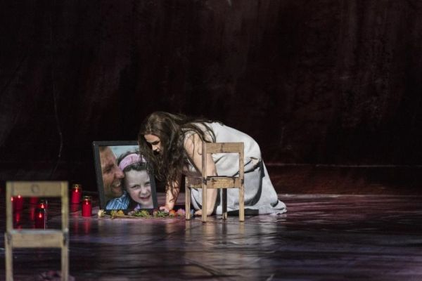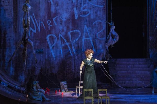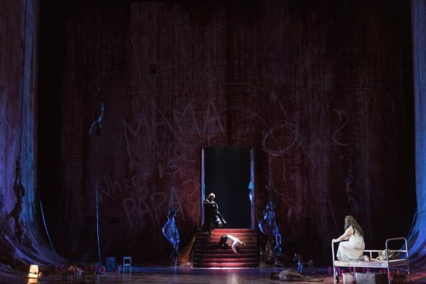 „Mama, where is Papa?“ steht auf der Hinterwand geschrieben, welche – wie auch die seitlichen Bühnenbegrenzungen von Patrick Bannwart/Maria Wolgast von blutigem Rot überschwemmt sind. Diese vier Worte lesen sich, als sollte Unterstufenschülern die Handlung von „Elektra“ in Kurzform erläutert werden. Regisseur David Bösch wirkt selber noch außerordentlich jung, trotz seiner realen 38 Jahre. Seit 2010 inszeniert er auch im Bereich des Musiktheaters, und das bei guten Adressen. In Bälde wird er an Covent Garden das Schreckenswerk aller Opernregisseure, Verdis „Trovatore“, herausbringen. Man muss seine Essener „Elektra“ also wohl als einen Ausrutscher oder einen irgendwie gearteten Black-Out bewerten. Was als Konflikt auf der Hand liegt, wird mit überdimensionalen Lettern unterstrichen, eine tiefenpsychologische Deutung hingegen bestenfalls ansatzweise geliefert: Kinderbettchen samt Puppeninventar, das von Elektra manisch behütete Vaterbildnis. Nein, diese szenischen Angebote sind zahm und zahnlos, erzeugen keine Gänsehaut, die bei einer „Elektra“-Aufführung eigentlich entstehen müsste.