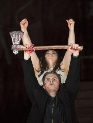Orest alias Almas Svilpa tritt wie ein vermummter Rübezahl auf. Aber gut: wenn er die Kapuze zurück schlägt und sein Gesicht zeigt, erhält das Wiedersehen von Bruder und Schwester einen prägnanten, sogar berührenden optischen Akzent. Viel bewirkt auch die potente, maskuline Stimme des litauischen Baritons, der – ungeachtet bedeutender Gastspiele an anderen Häusern – seit nahezu zwei Jahrzehnten dem Ensemble des Aalto Musiktheaters angehört. Wo gibt es das sonst? Wenn sich Orest nach dem Mord an der Mutter die Pulsadern aufschneidet und auch Elektra sich massakriert, liefert Böschs Inszenierung einige der wenigen triftigen Kommentare. Allerdings wirkten die Rufe von Chrysothemis nach dem Bruder jetzt nicht mehr stimmig – denn „wo bleibt Elektra“?