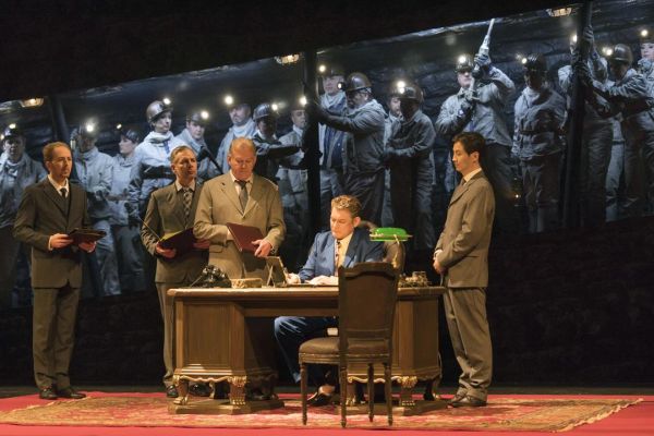 Dies ist der Fall bei Andreas Baesler, der in Essen zum vierten Male inszeniert. Als ehemaliger Student an der Folkwang Universität fühlt er sich der Ruhgebietsstadt vermutlich besonders verbunden und kramt nun „grämliches Zeug“ („Siegfried“) lokaler Couleur aus. Er fasst die Krupp von Bohlen und Halbach-Dynastie ins Auge, vor allem ihren letzten Vertreter, Alfred Krupp. Seine Verstrickung in die Rüstungspolitik der Nazis lässt Baesler beiseite. Er konzentriert sich auf den „großen Einsamen“, der – malträtiert von seinen Eltern – kaum je wirklich glücklich gewesen sein soll. Das passt in den äußeren Umrissen sicherlich zur Heiling-Figur, vereinseitigt freilich auch dessen Charakter. Ein so sensibler, verletzbarer Firmenboss, wie in Essen vorgeführt, ist generell kaum vorstellbar.