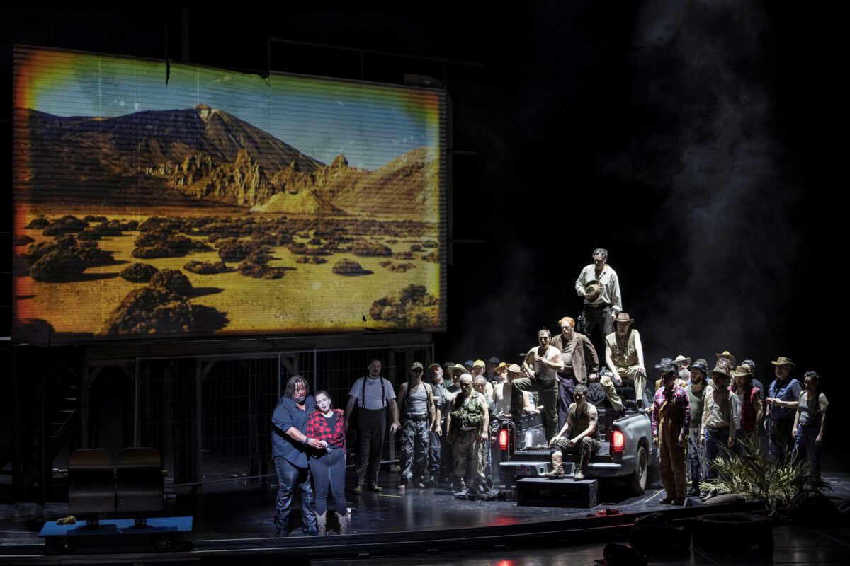 Mit einhelligem Beifall überschüttete das Essener Premierenpublikum die letzte große Opernpremiere unter der insgesamt unglücklich verlaufenen Intendanz von Merle Fahrholz. Mit Giacomo Puccinis Oper „La Fanciulla del West“ (Das Mädchen aus dem goldenen Westen) wählte man ein nicht sonderlich populäres, dafür aber das vielleicht innovativste und zugleich problematischste Werk des Komponisten.