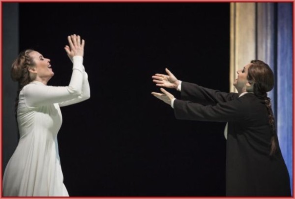 Was Tobias Hoheisel und Imogen Kogge in ihrer Regiearbeit präsentieren, mag Anhängern von „Werktreue“ angemessen vorkommen, ist aber tatsächlich weit von dem entfernt, was Vincenzo Bellini seinem Genius und Felice Romanis gekonnten Versen abgewonnen hat. Norma wird noch öfter das Parkett ansingen; auch der Römer Pollione und seine neue heimliche Geliebte Adalgisa werden in Hoheisels kalt glänzendem Bühnenbeton – oder sind es metallisch angestrahlte Bretter? – ihre Kantilenen brav aufgereiht von sich geben. Zwischen zwei drehbaren Halbkreisen, die sich problemlos für die nächsten Premieren von „Lohengrin“, „Le Prophète“ oder „Rigoletto“ wiederverwenden ließen, wird viel gestanden und würdig dahergeschritten. Der Chor bewegt sich nach den Mustern der italienischen Provinz der siebziger Jahre; ringende Hände und schräg gelegte Köpfchen wollen ein Drama szenisch vergegenwärtigen, in dem jede der flammenden Emotionen ins Extrem gesteigert wird. Denn die Schönheit der Melodien Bellinis darf nicht mit klassizistischer Gemessenheit verwechselt werden.