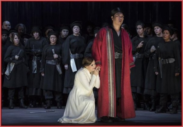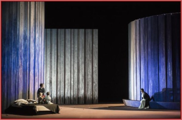Katia Pellegrino hat 2012 in der legendären „Norma“-Inszenierung von Jossi Wieler und Sergio Morabito in Stuttgart die Titelpartie gegeben. Dort waren die seelischen Kämpfe und Verwundungen der zweifachen Mutter, die ihr öffentliches Amt beschädigt, und der Priesterin, die ihre menschlichen Regungen verbergen muss, psychologisch detailliert ausinszeniert. Pellegrino hat davon nichts mitbringen können, ist in Essen wieder auf das antiquierte Rollenbild mit seinen Primadonna-Zügen und seinem hohlen Heroismus festgelegt. Zunächst sieht es so aus, als trete sie in die Spur veristisch geprägter Norma-Darstellerinnen mit wuchtigem Timbre und von stilistischer Finesse nicht angekränkelten Tönen. Doch in der Belcanto-Probe von „Casta diva“ lässt sie mit einem gestützten, weich geformten Piano-Beginn aufhorchen und entwickelt einen schwellenden, satten, aber kaum einmal übertrieben üppigen Klang.