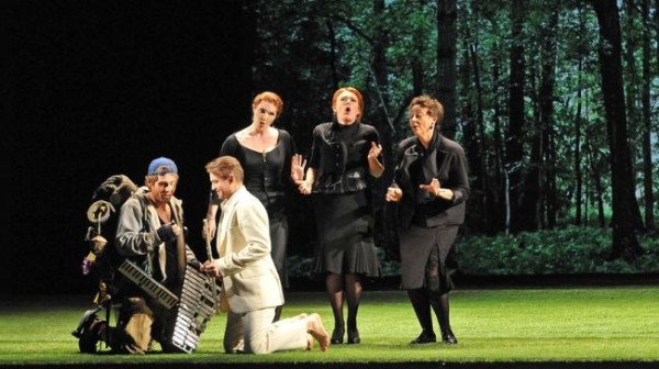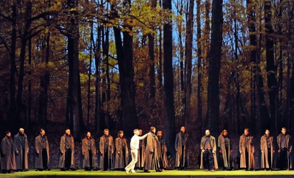 Der Regisseur Robert Carsen hatte indessen kein Debut mit der Zauberflöte: er hatte sie schon vor neunzehn Jahren in Aix-en-Provence inszeniert. Von einer Märchenoper wollte er nun aber nichts mehr wissen. Beim Durchlesen des Schikaneder-Librettos stieß er sechzig Mal auf die Wörter wie „Tod“ oder „Grab“ und inszenierte – dieser Tatsache als Leitfaden folgend – ein teilweise düsteres Totengräberstück. Der aufklärerischen Klassik mit ihrer Antikenliebe, in welcher das Werk entstand, folgte die Romantik mit ihrer Todessehnsucht. Mozart konnte das noch nicht wissen, aber Carsen weiß es und ersetzte die klassisch-verankerte Sicht auf das Werk durch einen Wald, nicht etwa einen Irminsul-Hain, sondern einen prächtigen deutschen Laubwald: das ist der Weisheitstempel, das „prächtige ägyptische Zimmer“ ein Waldlichtung mit ausgehobenem Grab. Als dritte wesentliche neue Sichtweise erscheint das Verhältnis Paminens zur Königin der Nacht und zu Sarastro, die wie ihre geschiedenen Eltern erscheinen, sich gegenseitig übler Charaktereigenschaften beschuldigen und – jeder für sich – das Kind haben wollen, das gerade erwachsen wird und sich schon ein eigenes Bild zu machen beginnt.
