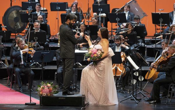 Der Dirigent des Abends ist Domingo Hindoyan, in Caracas geboren, Ausbildung und Assistent bei Daniel Barenboim, ab 2022 Chefdirigent der Royal Liverpool Philharmonic. Dazu als wunderschöne Beigabe: Er und Sonya Yoncheva sind ein Ehepaar. Das erklärt auch, dass beide eine Harmonie ausstrahlen, die sie musikalisch gemeinsam atmen lässt.