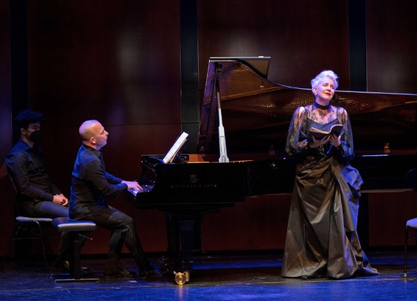 Wie lässt sich dieser Abend beschreiben? Beide Künstler wollen eine neue Idee bringen und ausführen. Die Sängerin hat stimmliche Probleme, in der Tiefe, bei mancher Intonation, die man von ihr in der Oper nicht kennt. Dazu steht oder sitzt sie direkt in der Rundung des weit geöffneten Flügels. Beide Künstler spielen und singen vom Blatt, wobei sich nicht die Souveränität eines Gerald Moore ergibt. Keine Kleinigkeit: gespielt wurde auf dem hauseigenen Steinway-Flügel, der Bösendorfer ist mit seinem Wiener Klang wärmer.