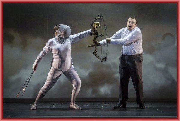 Klar und geradlinig ist Tandbergs Personenführung. Die Götter haben Flügel, sind also immer sofort identifizierbar, das Shakespeare-Theater ist spürbare Inspirationsquelle. Wild und blutrünstig (Intensiver Ketchupverbrauch!) Dann wieder deftige Situationskomik (Die drei Freier unterhalten die depressive Penelope mit der Slapstickeinlage der drei dreibeinigen Matrosen). Die Zwerchfelle hatten zu tun! Oder der Stummfilm-Ringkampf des Ulisse mit dem Herausforderer, dem Vielfraß Iro. Das hatte Chaplinformat…
