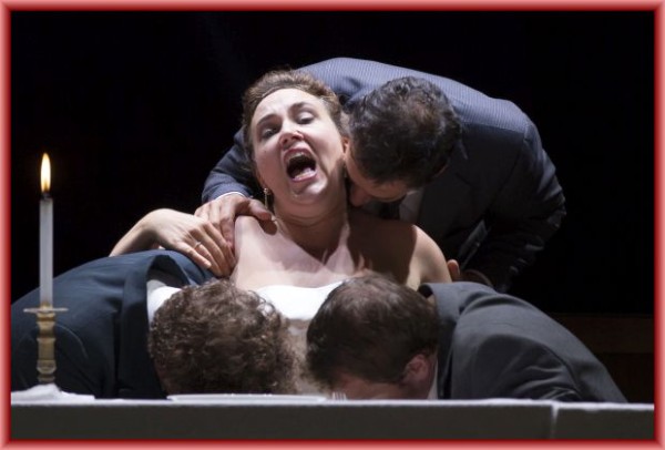 Lieto Fine nach Jahrzehnten. Erst als Ulisse das Betttuchmuster des Ehebetts nennt (das kann nur er wissen!), glaubt Penelope, dass der „Greis und Bettler“ der Rückkehrer ist… Ein Triumph! Ausdauernde Ovationen eines euphorischen Publikums. Das Orchester spielte im Applaus in Musicalmanier weiter, rhythmisches Klatschen, Bombenstimmung. Evviva Monteverdi!