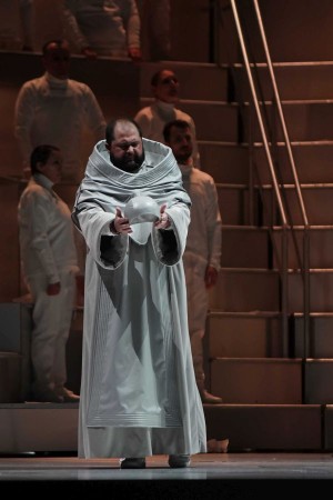 Anna Maria Chiuri als Favoritin Leonora ist zwar keine Belcantospezialistin und hatte mit manch höherem Ton dieser nach ihrer ersten Interpretin benannten Falcon-Rolle ihre Schwierigkeiten, aber die stabile Mittellage und vor allem die Expressivität der Rezitative und insgesamt die Intensität machten ihre Interpretation zu einer überzeugenden. In der mit sovracuti gespickten Rolle des Fernando gefiel Celso Albelo mit sicheren Höhen seines angenehm timbrierten Tenors, der allerdings mehrfach nasal klang. Er hätte für seine Auftritte einen richtigen Regisseur gebraucht, wie auch Simone Piazzola, der dem König seinen schönen Bariton, der weiter an Volumen zugelegt zu haben scheint, lieh, aber mit hängenden Schultern und schlurfendem Gang seinem Rang nicht gerecht wurde. Da wäre auch Tommaso Lagattolla gefordert gewesen, der die – mit Ausnahme des absurden Kopfputzes der Damen – an sich hübschen Kostüme entworfen hatte. Einen ausgezeichneten Eindruck hinterließ der Koreaner Simon Lim mit donnerndem Bass als strenger Baldassare. Um ihn endgültig zu beurteilen würde ich ihn gerne in einer Rolle hören, wo auch Weichheit gefragt ist. Vorzüglich war Renata Campanella als Ines mit klarem, leichtem Sopran, und auch Andrea Galli (Tenor) ist für seine überzeugende Gestaltung des heimtückischen Don Gasparo zu loben.
