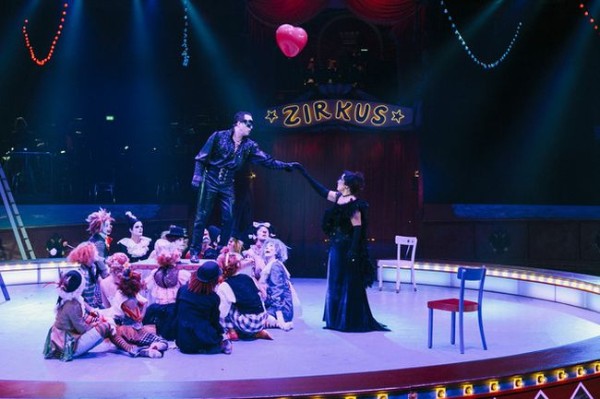 Szenisch war es ein sehr gelungener Abend. Der regieführende Staatsintendant Josef E. Köpplinger, von dem auch die neue Textfassung stammte, zeigte sich ganz in seinem Element und wartete mit einer derart ausgelassenen und regelrecht funkensprühenden Inszenierung auf, dass der Abend wie im Fluge verging. Er und sein Bühnenbildner Rainer Snell wussten die äußeren Gegebenheiten des Circus Krone optimal zu nutzen und dabei ein gelungenes Gemisch aus Operettenseligkeit und heiterem Zirkustreiben zu erzeugen. Dabei bezog der Regisseur in Brecht’scher Manier gekonnt auch den Zuschauerraum in seine Deutung mit ein. Noch vor dem eigentlichen Beginn des Stückes ließ er eine vom Ballett verkörperte Clownsmannschaft sich zwischen und in den Besucherreihen austoben. Da gab es bereits im Vorfeld einige köstliche, manchmal aber auch bewusst missglückt anmutende Einlagen. Die Spaßmacher sind auch im Folgenden sehr präsent. Nachdem während der Ouvertüre aus einer geöffneten Zirkuskiste ein roter Luftballon in Herzform – ein Symbol für die Liebe – emporgestiegen ist, der dann über der Szene schweben bleibt, geht es erst so richtig los. Praktisch den ganzen Abend über fegen die weiblichen und männlichen, von Marie-Luise Walek prächtig eingekleideten Clowns in den fulminanten Choreographien von Karl Alfred Schreiner durch den Raum und bieten so manche ausgesprochen heitere Einlage. Manchmal sitzen sie aber auch am Rand der Manege und beobachten still das Geschehen zwischen den Handlungsträgern. An solchen Stellen weist Köpplinger ihnen gleichsam die Funktion eines antiken griechischen Chores zu, dessen Aufgabe in erster Linie im Kommentieren der Handlung bestand. Und immer wieder kommt es auch zu akrobatischen Kunststücken. Nichts weniger als in höchstem Maße atemberaubend ist beispielsweise das akrobatische Bravourstück, das die beiden Artistinnen Stina Kopra und Lotta Paavilainen während der Umbaupause zum dritten Akt vorführen. Und auch die Jongleur-Einlagen von Thomas Dietz sind bewundernswert. Diese Operettenproduktion ist schon eine halbe Zirkusvorstellung, die aufgrund ihrer Fetzigkeit und munteren Ausgelassenheit noch lange in Erinnerung bleiben wird.