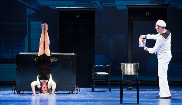 „Politisch korrekt ist es ja in keinem Fall“, meint eine amüsierte Zuschauerin in der Pause. Korrekt! Doch werden alle Witze von Anno Damals durch die musikalische und tänzerische Interpretation geadelt. Neben dem achtfachen Pas de deux gehört die Traumbegegnung zwischen der gesuchten und verehrten Miss U-Bahn, Ivy Smith, und dem Matrosen Gabey, dem lyrischen Tenor unter den drei Sängern, zu den emotionalen Höhepunkten der „Show“. Daniel Prohaska singt ihn, er singt ihn bewegend. Sein Traumgirl ist Julia Klotz, die nicht allein eine Madame de Tourvel zum Bühnenleben zu erwecken vermag (in den „Gefährlichen Liebschaften“ fiel mir diese herausragende Sängerin und Darstellerin zum ersten Mal auf). Großartig ist übrigens auch das „komische Paar“ No. 1: Mit „Carried away“ begegnen sich Chip (Boris Pfeifer) und Hildy Esterhazy (Sigrid Hauser) auf Augen- und Betthöhe: als höchst vitales Paar. Chapeau! Ozzy (Peter Lesiak) und die leicht durchgeknallte, latent nymphomane und nur scheinbar abgeklärte Claire de Loone (Bettina Mönch), die den Mann an sich mit dem Urmenschen vergleicht, um auf den Matrosen an sich zu stoßen, bilden die dritte durchaus tolle Paarbeziehung in diesem Terzett des politisch glücklicherweise unkorrekten Humors. Und wenn Sigrid Hauser „I’m blue“ singt, weiß man, dass am Gärtnerplatztheater nicht allein mehr oder weniger krachlederne Altistinnen, sondern großartige Künstlerinnen ihre Arbeit machen. Der Opernfreund wird spätestens, aber wirklich: allerspätestens, von Bernsteins Genie und der stupenden Qualität des Münchner Ensembles überzeugt, wenn er im zweiten Teil ein U-Bahn-Ensemble serviert bekommt, das sich hinter keinem Opern-Quartett verstecken muss – wohingegen das herzhafte „Do-Re-Do“, mit dem die im Gesangsstudio stehende Miss-U-Bahn alias Julia Klotz brilliert, an den Komponisten und die Librettisten des genialen „Candide“ erinnert, der vor ein paar Jahren am Gärtnerplatz eine erstklassige Interpretation fand.