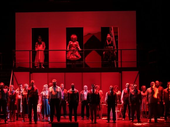 Am Pult der Neuen Philharmonie Westfalen gibt Thomas Rimes der Weill-Partitur den notwendigen Biss und die treffende Schärfe. Selbst in den bekannten Hits wie „Moon of Alabama“ sorgt er für die richtige Sachlichkeit der Musik.