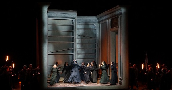 die Wege der Spielzeitplaner sind manchmal unergründlich und so haben wir in diesem Jahr gleich viermal die Möglichkeit, Poulencs Nonnenepos „Dialoges des Carmélites“ – eigentlich nicht unbedingt Teil des Standardreportoires – in Neuproduktionen auf deutschen Bühnen zu erleben. Neben den Häusern in Nordhausen, Aachen und Hannover beschäftigt sich auch das dem Vernehmen nach schönste Opernhaus im Revier mit dem Werk und hat die eindrucksvolle Produktion in Gelsenkirchen gestern erfolgreich aus der Taufe gehoben.