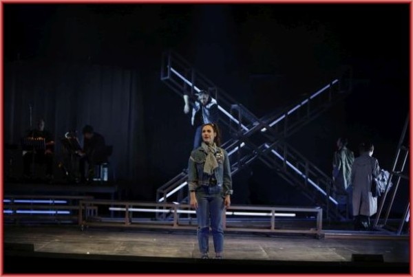 Für die Inszenierung zeichnet sich Carsten Kirchmeier verantwortlich, dem es wunderbar gelingt den Kern des Stückes zu finden und weder ein nostalgisches 80iger-Jahre-Revival noch eine um jeden Preis in die Gegenwart verlegte Geschichte zu erzählen. Schön allerdings, dass man trotzdem die DM nicht zum Euro werden lässt und eben weiterhin von Kohl statt Merkel die Rede ist. Wie die Musik wirkt auch diese Inszenierung trotz einiger historischer Bezüge eher zeitlos, im sehr positiven Sinne. Unterstützt wird dies durch die passenden Kostüme von Teresa Grosser. Das Bühnenbild von Katrin Hieronimus beschränkt sich auf der Bühne im kleinen Haus hauptsächlich aus vier Metallelementen die die Buchstaben E, X, I, und T ergeben, mehr ist allerdings auch nicht notwendig, da diese geschickt eingesetzt werden. Für die Choreographie zeichnet sich Paul Kribbe verantwortlich. Die eingesetzte Band spielt unter der musikalischen Leitung von Heribert Feckler rockig aber niemals zu laut. Wer es abseits der Oper auch mal rockig mag, dem sei dieses Musical durchaus ans Herz gelegt. Das Premierenpublikum wollte nach rund 1 ¾ Stunde, die (ohne Pause) im Zuge verging, die Darsteller kaum von der Bühne lassen.