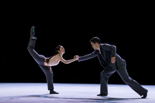 Mit der Uraufführung „With the lights“ eröffnet der Mannheimer Ballettchef Kevin O´Day den Abend. Zu dem Perkussionsstück „Dark Full Ride“ von Julia Wolfe entwickelt O´Day eine rasante Bewegungsabfolge. Arme und Beine werden in die Luft geworfen, wenn es darum geht die Energie der Musik in Bewegung umzusetzen. Manchmal hat dieses Stück in seiner Artistik auch eine Hip-Hop-Attitüde. Ayako Kikiuchi und Bridget Breiner dominieren das Geschehen, Hugo Mercier und Junior Demitre assistieren ihnen dabei oder setzen tänzerische Kontrapunkte.