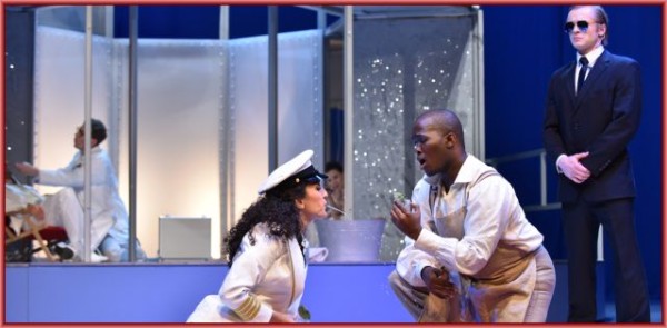 Der Schweizer Regisseur Christian Papke bekennt im Programmheft (da hat sich die Dramaturgie mit Erklärungshilfen für das Publikum jede erdenkliche Mühe gegeben), dass der „Liebestrank“ jetzt „nicht unbedingt das typische Thema für Regietheater“ sei, aber er tut es doch. Seine Neudeutung geht bis in die Unkenntlichkeit, wenn die Geschichte auf einem Schiff spielt (Ausstattung: Klaus Werner Noack) wo Norina Offizierin ist (mit fescher Mütze, „Traumschiff“ sieht ja wohl jeder), Belcore der Security-Chef, Dulcamara der Entertainer und Nemorino halt ein armer Schiffsjunge. Wer das Original nicht kennt, wird nach diesem Abend keine Ahnung davon haben. Die Geschichte mit Liebestrank, Königin Isolde und dergleichen funktioniert solcherart gar nicht; und wenn Dulcamara mit „Udite, udite, o rustici“ auftritt, sind natürlich auch weit und breit keine Rustici, wohl aber best geformte Damen im Bikini und viel schmuckes Schiffspersonal zu sehen. Aber man soll nicht so kleinlich sein.