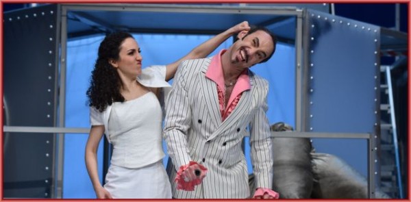 Aber glücklicherweise ist die Opernwelt nie frei von Überraschungen, und so erlebt der Gast als Wiederaufnahme der April-Premiere eine so verrückt-vergnügliche, absichtlich blödsinnige und verblödelte Aufführung von Donizettis „Liebestrank“ (mit dem deutschen Titel angekündigt, Italienisch gesungen, mit deutschen und polnischen Übertiteln), dass das Staunen schnell in den Spaß übergeht.