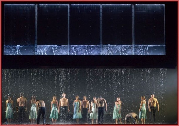 Genau 50 Jahre nach jenem Schreckenstag wurde im Fenice eine Oper uraufgeführt, die an diesen Schrecken erinnert: eine Wasseroper, die ihren wesentlichen Reiz aus jenem nassen Element zieht, das am Ende des 80 Minuten langen Werks als „sposa amorosa“, aber auch als tödliches Wesen beschrieben wird. Immerhin kommt in Filippo Peroccos Oper niemand ums Leben. Weder die 7 Solisten noch der konzertante Chor noch der Bewegungschor noch das Orchester, das vermutlich ein paar jener Spritzer abbekommen hat, die auf der Bühne fleißig produziert werden. Wäre nicht das Wasser, so wäre die Inszenierung Damiano Michielettos über weite Strecken eine statischere Angelegenheit, als es das Sujet vorsieht. Doch ist das Wasser überall: zuerst auf der Bühne, dann im Orchester, durch das fast pausenlos die Wellen rollen – bis das Aquagranda über die Insel Pellestrina rauscht. Perrocco hat mit hoher technischer Meisterschaft eine fast vollkommen dissonante Partitur geschaffen, in der es impressionistisch flimmert. Die „onde“ fließen durch die Orchestergruppen, dass der analytisch orientierte Hörer seine Freude am dunkelbrausenden und schrillen Pfeifen von Wind und Wellen hat. Etwa auf der Mitte des von Roberto Bianchin und Luigi Cerantola gedichteten Werks, das kaum etwas aufweist, was als „Handlung“ bezeichnet werden kann (daher auch im üppigen und schön gemachten Programmbuch keine wirkliche Synopsis zu finden ist), steht die Musik plötzlich fast still. Die beiden Frauen Lilli, die Frau des Ernesto, Sohns des Fischers Fortunato, und Leda, die Freundin Lillis, beten da zu Gott: er möge sie vor den Fluten schützen. Die Ruhe vor dem Sturm…