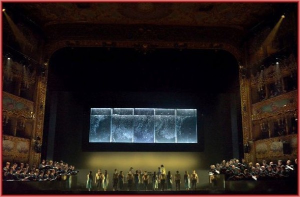 Auch der ausgezeichnete Chor des Fenice, der zu Seiten der Bühne steht (links die Frauen, rechts die Männer), zieht dem Werk eine symbolische Ebene ein, die sich als „voce della laguna“ in poetischen Bildern – ja: ergiesst: „Aqua sposa / amorosa / aqua tosa / me morosa“ … „luna stelle sole cieli donna“… Das Wasser steigt, es tost, dann stehen die Winde still, endlich befiehlt der Polizeichef die Evakuierung. Das Finale tönt zunächst euphorisch in den Saal: jubelnde Trompeten entfesseln inmitten einer an diesem Abend bislang nicht gehörten Orchesterharmonie (freilich reizvoll überlagert von dissonanten Passagen) so etwas wie ein Prinzip Hoffnung, bevor das Werk so endet, wie es begann: leise. Marco Angius leitet das Orchester des Fenice: eine Kärrnerarbeit für alle Beteiligten, wenn man bedenkt, dass die Oper mit diesen 9 Aufführungen wieder in der vermutlich ewigen Versenkung verschwinden wird. Freilich macht es wohl nur an diesem Ort, in diesem Opernhaus, den besten Sinn. Die Aura spielt eben eine wesentliche Rolle: hier, wo die Reflektion des Wassers in den Zuschauerraum schwappt und die Orchesterwellen ins Ohr fließen.