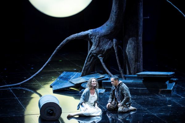 Um allen Sängerinnen und Sängern Gerechtigkeit widerfahren zu lassen, beginne ich mit der Würdigung in der chronologischen Reihenfolge ihrer (gesanglichen) Auftritte. Nach dem atemlos stürmischen Orchestervorspiel fällt der verfolgte und total erschöpfte Siegmund von Will Hartmann in Sieglindes Behausung am Fuss der Weltesche. Will Hartmann geht den Siegmund ganz sanft an, ohne Pressen, ohne Drücken, schlicht und wunderschön intonierend. Als Beispiel die zart und innig empfundene Passage Die Sonne lacht mir nun neu. Aber er findet auch die Kraft für die Wälse-Rufe, nicht mit Stimmkraft protzend, sondern schön organisch aufgebaut im crescendo. Fiebrig und ekstatisch steigert er sich in den Geschlechtsakt des Inzests – Winterstürme wichen dem Wonnemond – mit seiner Schwester (man vermeint zu hören, wie ihm im Lenz bei Vollmond der „Spargel“ wächst … ). Und dann ist da noch das Spiel mit den Augen und den Blicken, das in der gesamten Inszenierung dieser WALKÜRE so wichtig ist. Ja, die Blicke sprechen hier eine ganz besondere Sprache und es ist wunderbar zu erleben, wie die Protagonisten auf einander eingehen, zuhören, mit Blicken und Mimik reagieren. Siegmunds Schwester Sieglinde beherrscht dieses subtile Spiel ebenfalls auf geniale Art und Weise. Michaela Kaune singt die Rolle mit exemplarischer Phrasierung und ebensolcher Diktion.