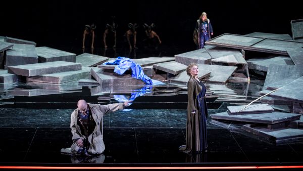 Auch er beherrscht das Spiel mit den Augen, beobachtet kritisch jedwede Regung der beiden Geschwister. Auch Wotan kann das, obwohl er einäugig ist. Er kann seine liebevollen Blicke auf seine Favoritentochter Brünnhilde vor seiner Gemahlin Fricka nicht verbergen. Tómas Tómasson wächst in der Rolle des Göttervaters im Verlauf des Abends zu überragender Grösse. Nach seinem verlorenen Kampf mit der auf der Heiligkeit der Ehe beharrenden Gemahlin Fricka entblösst er sein Innerstes vor Brünnhilde in einer eindringlichen Szene: Immer mehr Spiegel tauchen auf, spiegeln den Gott, der zum verletzlichen Menschen wird, sich sinnbildlich seiner Mäntel und des Brustpanzers entledigt, seine Gefühle offenbart, seine Durchtriebenheit, sein Spiel mit Lug und Trug aufgibt – und Mensch wird. Und wenn dann seine harte Schale am Ende des Schlussaktes gänzlich bricht und er sich endgültig von Brünnhilde verabschiedet (Leb wohl, du kühnes, herrliches Kind), sich die beiden schluchzend in die Arme fallen, dann bleibt auch beim Zuschauer kein Auge trocken. So einen bewegenden Abschied Wotans habe ich selbst noch nie erleben dürfen. Daran hat natürlich auch Brünnhilde ihren wichtigen Anteil. Petra Lang gestaltet sie mit triumphierender Sicherheit, wuchtigen Hojotoho-Rufen stehen zart empfundene Passagen gegenüber, so die bewegende Todesverkündigung an Siegmund oder eben ihre Bitten und Beteuerungen in der Schlussszene War es so schmählich, was ich verbrach.