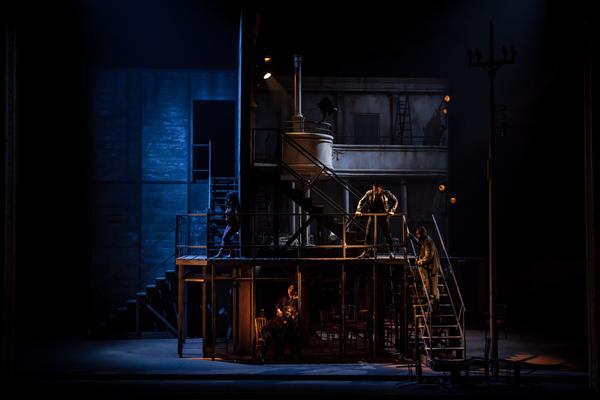 Archaisch geht es zu im Hinterhof. Gangboss Luna mit Halstattoo buhlt um die Gunst von Leonora, dem Mitglied einer Mädchengang. Die aber liebt Manrico, der einem anderen Clan angehört, der sich regelmäßig um Azucena schart. Als Leonora ihren Manrico tot glaubt, flüchtet sie sich in eine Sozialstation und versorgt Frauen vom Rande der Gesellschaft medizinisch und mit heißem Kaffee, verspricht sich später dem Clanchef Luna, um ihren Liebsten zu retten, der von Luna aber ermordet wird, so daß Azucena ihre Mutter als gerächt herausschreien kann. So seltsam das anmuten mag, so gut funktioniert es. Zwar wirkt die eine oder andere Idee doch recht aufgesetzt, im Stuhlkreis hüpfende Halbweltler beispielsweise wirken nicht wirklich glaubwürdig, doch ist die Szenerie so wirkungsvoll mit pyrotechnischen Effekten und showkämpfenden Akrobaten gespickt, dass alles rund wird und ein überzeugendes Gesamtbild ergibt.