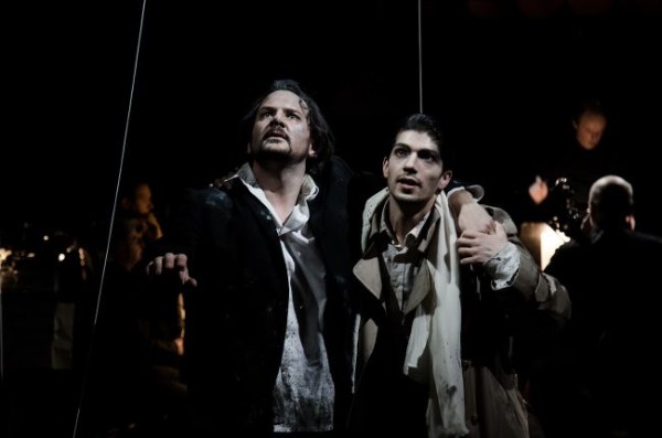Ursprünglich sollten Johannes Harneits als Doppelabend konzipierte neue Opern „Abends am Fluss“ und „Hochwasser“ in der Spielzeit 2012/13 an der Leipziger Oper aus der Taufe gehoben werden. Aus Enttäuschung über die seinerzeitige Kulturpolitik in Leipzig schied Peter Konwitschny, der als damaliger Chefregisseur des Hauses die beiden Werke bei dem westdeutschen Komponisten Harneit und seinem aus Ostdeutschland stammenden Textdichter Gero Troike in Auftrag gegeben hatte, vorzeitig aus seinem Engagement, was auch das Aus für die geplante Uraufführung bedeutete. Es ist dem versierten Heidelberger Intendanten Holger Schultze und seinem ausgezeichneten Operndirektor Heribert Germeshausen sehr zu danken, dass sie Konwitschny die Möglichkeit gaben, diese nun am Theater der Stadt Heidelberg nachzuholen und dort gleichzeitig auch zum ersten Mal am Regiepult Platz zu nehmen, was angesichts des hohen internationalen Renommées des Regiealtmeisters Kontwitschny, der an den größten Bühnen des In- und Auslands zu Hause ist, ein hochrangiges Ereignis darstellt und den Ruhm des Theaters noch weiter fördern dürfte. Der große Erfolg gab allen Beteiligten recht: An diesem denkwürdigen Abend war alles wie aus einem Guss; Szene, Musik und Gesang fügten sich nahtlos zu einer sehr stimmigen, imposanten Einheit auf hochkarätigem Niveau zusammen. Das Ganze geriet zu einem spektakulären Triumph für das Heidelberger Theater, dessen Leitung für moderne Oper ein ausgezeichnetes Händchen hat und dessen herausragende Aufführungen so manches andere, auch größere Opernhaus vor Neid erblassen lassen könnten. Der Musiktheatersparte des Hauses kann man zu der vor kurzem erfolgten Auszeichnung mit dem von der Stiftung des Verbandes Deutscher Bühnen- und Medienverlage gestifteten Preis der Deutschen Theaterverlage nur herzlich beglückwünschen. Angesichts der enormen künstlerischen Leistungen des lediglich mittelgroßen Theaters der Stadt Heidelberg, erscheint diese hohe Ehrung nur zu berechtigt.