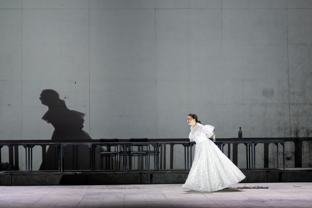 Ganz und gar unpoetisch ist erst einmal die Bühne, eine graue Betonwand mit einem weißen, aber recht verschmutzten Mittelteil, Leuchtröhren senken und heben sich im zweiten Teil über das Geschehen, es gibt hin und wieder wenige, keiner Epoche oder Landschaft zuzuordnende Sitzgelegenheiten und Tische und, wenn es gebraucht wird, und das ist oft, ein Doppelbett mit bunten Kissen(Bühne Rufus Didwiszus). Zeit- und ortlos sind die Kostüme, Russisches manifestiert sich nur in der Brauthaube Katerinas (Kostüme Victoria Bahr).Die Regie folgt der im Libretto vorgegebenen Handlung, nur dass sie oft etwas noch drastischer, noch grausamer, noch ekelerregender daherkommt, als von Buch und Musik geplant, etwa wenn sich der Schäbige am Leichnam des Sinowi vergeht, der Pope ziemlich alle denkbaren Laster in sich vereint, und so erwartet man es geradezu, dass nicht nur das arme Fröschlein, sondern auch sein Herrchen sein Leben auf der Polizeistation lassen müssen. Schnell wird klar, warum der Alte Zwangsarbeiter zur Blindheit verdammt ist: Sonst könnte er nicht davon singen, dass „beide ertrunken“ sind, denn Kosky lässt erst Katerina die Nebenbuhlerin erdrosseln und dann sich selbst erschießen. Dazu laufen die Zwangsarbeiter sinn- und ziellos und immer wieder über die Bühne. Hatte man also bis fast zum Schluss bereitwillig und mit Anteilnahme das Geschehen auf der Szene verfolgt, regte sich im zweiten Teil zunehmend innerlicher Widerstand gegen die optische Umsetzung des völlig romantikfreien Geschehens.