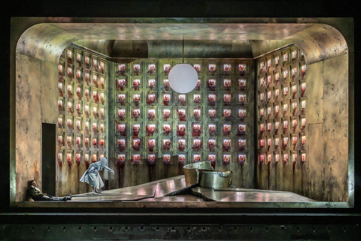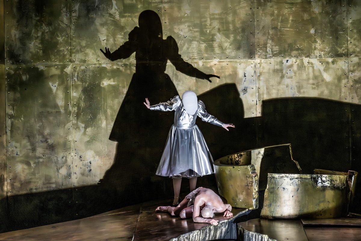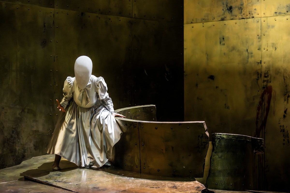 Das leuchtet ein, weniger dagegen, dass sie Ihre Gesichtsverdeckung, eine Art von weißem, alienhaftem Kokon oder geschlossenem Visier auch am Ende der Oper nicht lüftet. Man sieht ihr Gesicht nie, sie selbst reibt sich am Schluss der Oper, wo sie entgegen der Musik und der Ankündigung des Herodes „Man töte dieses Weib“ keineswegs getötet wird, lediglich an Stelle der Augen ihre Gesichtsbedeckung blutig. Es ist die eklatanteste Irritierung der Regie in dieser insgesamt außergewöhnlichen Inszenierung.