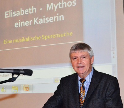 „Die Deutsche Johann Strauss Gesellschaft (DJSG) auf den Spuren von Kaiserin Sisi“, ein Festvortrag mit vielen Musikbeispielen von Prof. Helmut Reichenauer, so lautete am Vormittag die Einladung. In der Aula des Casimirianums Coburg, für dessen Gastfreundschaft sich die Deutsche Johann Strauss Gesellschaft herzlich bedankt, fand dieser, ein höchst interessanter Vortrag über „Sisi, das österreichische Kaiserhaus und die Familie Strauss“, statt. Das Ehrenmitglied der DJSG, Prof. Helmut Reichenauer, gleichzeitig Präsident des Kulturvereins „Wiener Blut“ in Wien schaffte es, die „Sisi-Zeit“ den fast 50 Zuhören aus der ganzen Bundesrepublik und der Schweiz, so nahezubringen, dass man sich fast in diese zurückgesetzt fühlte. Am Heiligen Abend 2012 jährte sich die Geburt der späteren österreichischen Kaiserin Elisabeth in München als Tochter des Herzogs Max in Bayern zum 175. Male. In seiner PowerPoint Präsentation mit zahlreichen Bildern aus der Zeit der Donaumonarchie gelang es Reichenauer die Zuhörer so zu fesseln, dass man die Zeit vergaß und die 90 Minuten „wie im Flug“ vergingen. Das lag sicher auch daran, dass er die Präsentation mit insgesamt 18 Musikbeispielen ausstattete und so die musikalischen Brücken über das Kaiserhaus und die Musik der Sträusse schlug. Das Leben einer der schönsten Frauen ihrer Zeit beleuchtete er aus ihrer Zeit im Kaiserhaus und ihrer ambitionierten Rolle in der damaligen Politik. Ihrem überragenden Engagement ist es z.B. zu danken, dass es 1867 zum Ausgleich zwischen den beiden Reichshälften – Österreich und Ungarn – und damit zur Gründung der österreichisch-ungarischen Doppelmonarchie kam. Ihr Leben wiederspiegelt sich aber auch in der musikalischen Verbindung zur Familie Strauss, aber auch deren Zeitgenossen, wie z.B. des jungen August Lanner (Sohn von Joseph Lanner) oder von Phillipp Fahrbach jr. Neben den hinreißenden „Myrthenkränzen“ von Johann Strauss (Sohn) als kompositorische Widmung zu ihrer Hochzeit mit Kaiser Franz Joseph zeigte Prof. Reichenauer auch an Hand der beiden Walzer „Myrthen –Sträußchen“ und „Schleier und Krone“, dass das kompositorische Talent von Eduard Strauss dem seiner beiden Brüder ebenbürtig ist und er zu Unrecht in ihrem Schatten steht.