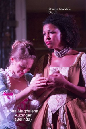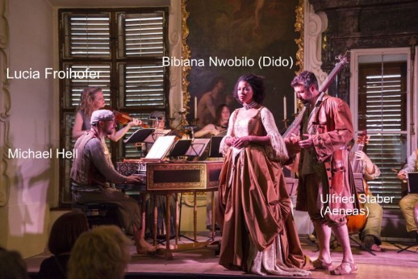 Der 300 Plätze fassende Saal füllt sich – da tritt sie gleichsam leibhaftig auf. Die in Nigeria geborene, in Österreich aufgewachsene und ausgebildete 33-jährige Sopranistin Bibiana Nwobilo ist eine ideale Besetzung für die nordafrikanische Königin – und das nicht nur durch ihre edle Erscheinung, sondern auch durch ihren ebenso edlen Gesang. Fern aller manchmal zu erlebenden Romantisierung singt sie die zwischen Sopran und Alt liegende Partie mit großer Ernsthaftigkeit und perfekter Ausgeglichenheit der Register. Auch das Ensemble um sie herum ist ideal zusammengestellt. Da ist einmal die Neue Hofkapelle Graz , die unter der Leitung der Geigerin Lucia Froihofer und des Cembalisten und Blockflötisten Michael Hell mit ungeheurem Animo, gleichzeitig aber mit schlanker Präzision und schönem Klang spielt – jede Orchesterstimme nur einfach besetzt. Wirklich ein optimaler Klangkörper für dieses Werk in diesem Raum!