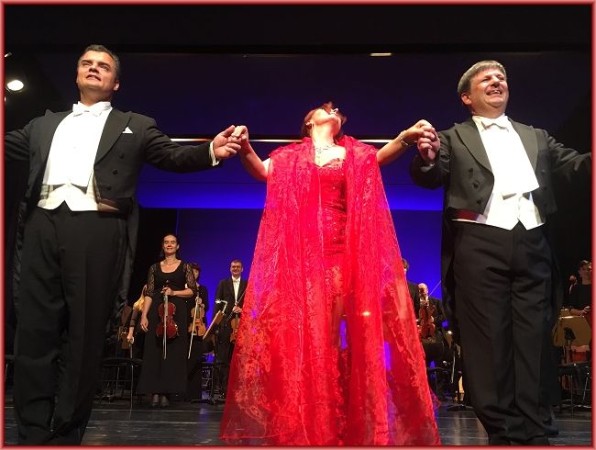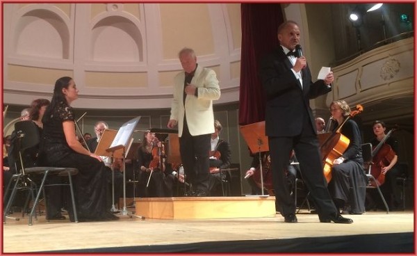 Der Abend beginnt mit der Ouvertüre zu der relativ unbekannten Operette von Oscar Straus „Rund um die Liebe“ und stimmt das erwartungsvolle Publikum im ausverkauften Saal so richtig ein. Mit dem wunderschönen Wienerlied „Im Prater blühn wieder die Bäume“ von Stolz setzt Gabriele Rösel ein überzeugendes Zeichen ihrer stimmlichen Fähigkeiten. Man konnte sich den Prater und vor allem die blühenden Bäume so richtig bildlich vor Augen vorstellen. Ihr weicher klangvoller und in jeder Lage ausgeglichener Sopran bezaubert auch in ihrem zweiten Solo dem Lied „Du sollst der Kaiser meiner Seele sein“ aus der Stolzoperette „Der Favorit. Mit dem Stolzlied aus dem gleichnamigen Film „Das Lied ist aus“ kann Eugene Amesmann seinen vollen, ausgeglichenen stimmschönen, in jeder Lage bombenfest sitzenden Tenor, der keinerlei Höhenschwierigkeiten hat, einsetzen. Eine der Höhepunkte vor der Pause ist das Duett „Lippen schweigen“ aus der Operette von Lehár „Die lustige Witwe“, welches Gabriele Rösel und Eugene Amesmann unvergleichlich zart und gleichzeitig mit vehementem Ausbruch fast zelebrieren. Tosender Beifall für beide Künstler. Dazwischen der Konzertwalzer „Wiener Café“ von Stolz, blendend präsentiert von der Bad Reichenhaller Philharmonie mit ihrem „jugendlichen“ Dirigenten Roland Seiffarth. Und dazwischen immer wieder Geschichteln und Bonmots von Hans Stolz, vielfach auch im Zwiegespräch mit Roland Seiffarth. Aus dem Film „Zauber der Boheme“ singt dann Eugene Amesmann das Walzerlied von Robert Stolz „Ich liebe dich“ und dabei werden so manche Augen der im Publikum sitzenden Damen mehr als feucht. Und als er durch die Reihen gehend noch rote Rosen verteilt, gibt es kein Halten mehr. Dass er dieses wunderschöne Lied stimmlich bis zum letzten auskostet, brauche ich wohl nicht extra zu erwähnen. Und dann singt er noch gemeinsam mit Gabriele Rösel aus dem „Im weißen Rössl am Wolfgangsees“ das Duett „Mein Liebeslied muss ein Walzer sein“. Wunderschön, zart, schmetternd in den Höhen, einfach zum Genießen. Und so sieht es auch das Publikum, welches aus dem Klatschen gar nicht mehr herauskommt. Dazwischen vom herrlichen Orchester mit seinem Dirigenten, der in Leipzig als Stolzspezialist nicht nur galt, sondern es auch war, der Marsch aus der gleichnamigen Stolzoperette „Frühjahrsparade“. Und da ist ja auch noch Christine dell´Antonio. Sie bezaubert zuerst mit dem Stolzlied der Marika „Joj, mámám“. Und es macht einfach Spaß ihr zuzuhören und vor allem auch zuzuschauen. Und nach der Pause setzt sie noch einen drauf. Das Lied „Im Casino, da steht ein Pianino“ aus dem Singspiel von Stolz „Wenn die kleinen Veilchen blühen“ zelebriert sie förmlich.