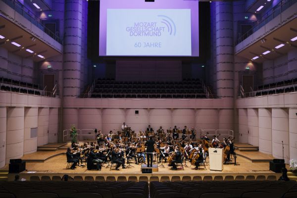 So war es jetzt Zeit, das 60-jährige Jubiläum mit einem Festkonzert im Dortmunder Konzerthaus zu begehen. Begrüssung erfolgte durch den Vorstandssprecher Dr. Eiteneyer. Es folgte eine präzise und erfreulich kurze Festansprache durch Matthias Schulz, seit kurzem nicht mehr Geschäftsführer der Stiftung Mozarteum in Salzburg und bald Nachfolger von Jürgen Flimm als recht jugendlich wirkender Intendant der Staatsoper unter den Linden in Berlin. Er stellte die Frage, wie Mozart wohl mit 60 komponiert hätte, erinnerte an die Zusammenarbeit der Mozart Gesellschaft Dortmund mit der Stiftung Mozarteum, erwähnte, daß die „Zauberflöte“ an der Linden-Oper noch immer erfolgreich in der Inszenierung von August Everding und dem Bühnenbild nach Schinkel gespielt wird und zitierte seinen baldigen Chefdirigenten Barenboim mit den Worten, Mozart schaffe es, „gleichzeitig zum Weinen und zum Lachen“ zu verführen.