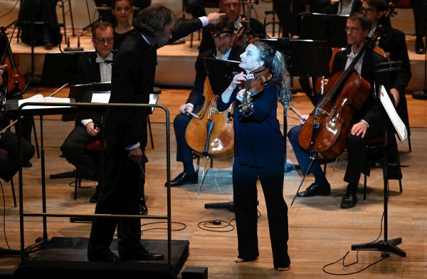 Das Orchester mit Vladimir Jurowski konnte auch die Ouvertüre und das Scherzo mit der uns gewohnten Qualität anklingen lassen, als aus der Streichergruppe eine aufmüpfige Musikerin, „bewaffnet“ mit einer Geige auftauchte und das Heft in die Hand nahm. Sprachlich und körperlich unentwegt aktiv, aber mit wenig Einfühlungsvermögen in das Musikalische versuchte sie in die Traumwelt Shakespeares hineinzuspringen und sich die Figuren zu eigen zu machen. Unentwegt brachte sie neue Requisiten ins Spiel. Selbst ein Palettenwagen, der als Bühne, Künstlergarderobe, Brautbett und Werkzeuglager für die Handwerker herhalten konnte, wurde auf die Bühne gezogen. Diese etwas flippige Darstellung lenkte natürlich die Aufmerksamkeit des Auditoriums auf Isabel Karajan, so dass die Präsenz der übrigen Beteiligten zurück trat. Auch musste man gut vorbereitet sein, wollte man Ansagen der Sprecherin (eigentlich Schauspielerin) folgen.