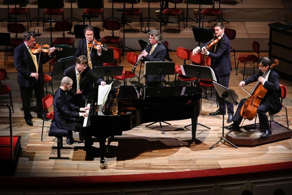 Sergei Prokofjew, 1891 in der Ukraine geboren, hatte nach der Petrograder Aufführung seiner „Klassischen Symphonie“ 1918 die Instabilitäten seiner Heimat hinter sich gelassen und bis 1932 ein unstetes Wanderleben als Pianist und Dirigent in Europa sowie Amerika geführt. Im Herbst 1919 traf er in den USA ehemalige Kommilitonen des Petersburger Konservatorium, die mit einem jüdischen Ensemble tingelten. Diese gaben ihm ein Heft mit hebräischen Themen und baten um die Komposition einer Ouvertüre für ein Sextett. Beim Blättern im Heft und beim Improvisieren am Klavier fügte sich für Prokofjew die Komposition wie von selbst zusammen. Inzwischen existiert diese „Ouvertüre über hebräische Themen op. 34“ in unterschiedlichen Fassungen: für kammermusikalisches Sextett und eben auch für Orchester. Wellber hatte dankenswerterweise für das Konzert eine frühe kammermusikalische Fassung für Klavier, Klarinette und Streicher-Gruppe ausgewählt. Der Israeli Omer Meir Wellber ist mit der Bandbreite an Stilrichtungen innerhalb der Klezmer-Musik bestens vertraut und so ist es nicht verwunderlich, dass seine Prokofjew-Interpretation verwandte Züge bietet. Die Vorgabe des Komponisten „Un poco allegro“ schiebt er zur Seite, gibt das Tempo vom Klavier an und lässt die Musiker frisch und temporeich aufspielen. Das Sextett vervollständigten der 1. Konzertmeister Roland Straumer, der Konzertmeister der 2. Violinen Professor Reinhard Krauß, der Solo-Bratscher Florian Richter, der Solo-Cellist Friedrich Christian Dittmann und der Solo-Klarinettist Wolfgang Große.
