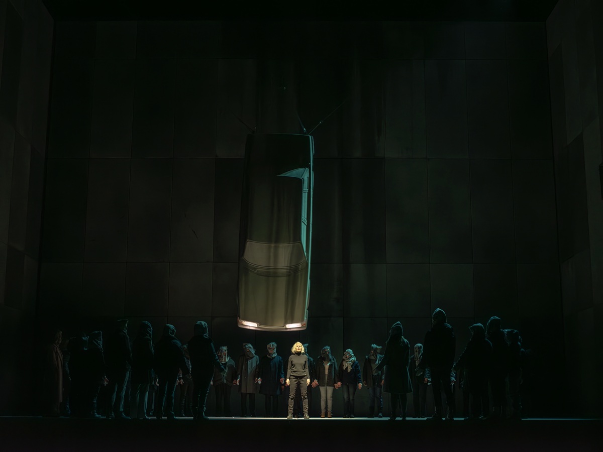 Der belgische Künstler, Modeschöpfer und Opernregisseur Christophe Coppens löst in seiner Arbeit die Grenzen zwischen den Völkern auf. Römer und Gallier existieren nicht in seiner dunklen, trostlosen Welt – und doch geht es grausam zu, wie die Straßenkämpfe schon während der bespielten Ouvertüre zeigen. Die von Coppens gestaltete Bühne erinnert mit ihrer Betonoptik an eine Mischung aus Verlies und Bunker und wann immer Gefühle in dieser starren Umgebung eine Rolle spielen, sind bei Coppens Autos im Spiel. Besonderes Gottvertrauen verlangt dabei Norma schon ihr Gebet Casta Diva ab, das sie unter einem über ihr schwingenden Auto zelebriert, Pollione und Adalgisa lieben sich im Auto und Normas zerrüttete Gefühlswelt visualisiert sich in einer überdimensionalen Skulptur aus Autowracks. So ist es auch nicht verwunderlich, dass Pollione mit Norma zusammen am Ende in einem brennenden Wagen stirbt. Das von einigen groben Wechseln abgesehen exzellent austarierte Licht von Peter Van Praet schafft düstere, bedrohliche und fesselnde Effekte und so gelingen dem Produktionsteam eindrucksstarke Bilder, die für sich stehen und wirken.