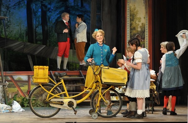 Und er hat sich, das kann man gleich zu Beginn sagen, wahrlich gelohnt. Ich habe schon viele Vogelhändler-Aufführungen erlebt, aber eine solche bunte, farbenprächtige, lebendige und stimmige, wie hier in Coburg fast nie. Der Gastregisseur, der Schweizer Volker Vogel, der als früherer Tenor-Buffo genau weiß, wie Operette gespielt werden muss und dies als Regisseur bei den Operettenfestspielen in Hombrechtikon, als Oberspielleiter der musikalischen Komödie Leipzig auch immer wieder aufs Neue eindrucksvoll beweist, hat alle Register einer überzeugenden Inszenierung gezogen. Er verknüpft die Musik aufs beste mit der Szenerie, alles ist aufeinander abgestimmt und er inszeniert so wunderbar herrlich altmodisch. Und das Publikum geht begeistert mit, es will keine Neudeutung der Operette, keine Selbstverherrlichung eines übergeschnappten Regisseurs, sondern es will genießen und in der Musik schwelgen – und genau das kann es bei diesem eindrucksvollen Vogelhändler.