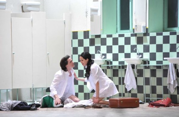 Zunehmend fühlen sich die vier Schüler nicht mehr so wohl in ihrem Internat, gegen dessen im Programmheft abgedruckte Schulordnung sie ständig verstoßen, rauchen, Alkohol trinken und in Straßenkleidung den Duschraum betreten. Schließlich entscheidet man sich, zu fliehen und dazu eine Schüleraufführung zu nutzen, bei der Szemerédy und Parditka dann doch noch ein wenig mit türkisch-exotischen Klischees spielen. Obwohl es Blonde und Pedrillo, die sich zuvor durch eine Zuschauer-Loge davonmachen wollten – mit Brecht können die Regisseurinnen umgehen – gelingt, den diensthabenden Pädagogen Osmin zu überwältigen und zu fesseln, misslingt die Flucht. Der fehlgeschlagene Versuch, den sie beengenden Verhältnissen zu entkommen, mündet bei Konstanze und Belmonte in einen Selbstmordversuch. An dieser Stelle warten die regieführenden Damen erneut mit einem Kunstgriff auf, der ebenfalls Konwitschny nachempfunden sein könnte: Nachdem sich die Liebenden die Pulsadern aufgeschnitten haben, fällt ein Zwischenvorhang. Das Stück scheint zu Ende zu sein, einen tragischen Ausgang genommen zu haben. Über Lautsprecher vernimmt man die entsetzten „Konstanze“-Schreie Selims und ein allmählich ersterbendes Röcheln. Dann geht der Vorhang aber auf einmal wieder auf. Man sieht wie der Schuldirektor seine Zöglinge nach bestandenem Schuljahr in die Freiheit entlässt. Auch Konstanze und Belmonte gesellen sich dazu, wieder völlig unversehrt. Befanden sie sich aber überhaupt jemals auf der Schwelle des Todes? Das ist zumindest zweifelhaft. Eher nicht. Die ganze Selbstmordszene war vielmehr eine der Phantasie des Mädchens entsprungene letzte Hommage in Richtung des immer noch verehrten Lehrers, den sie nun verlassen muss. Selims Gnade, seine Huld, besteht bei Szemerédy und Parditka in der Zuerkennung des erfolgreichen Schuljahrabschlusses trotz nur schwacher Leistungen. Aber genau das macht ja den humanen Faktor aus. Schuldirektor Selim setzt auch in die Tat um, was er lehrt. Dieser Ansatzpunkt der beiden genialen Regisseurinnen war sehr überzeugend. Fern der Tradition haben sie hier mit einem modernen Mantel das zeitübergreifende, in allen Ären gültige Zentrum getroffen: Humanität. Und gerade darum geht es ja nicht nur in der „Entführung“, sondern auch in einigen anderen Opern Mozarts. Dementsprechend kann man diese in jeder Hinsicht gelungene Produktion, zu der man den beiden Regisseurinnen nur herzlich gratulieren kann, sogar als werktreu bezeichnen. Dieses Musterbeispiel hochkarätigen Musiktheaters ist regelrecht preisverdächtig.