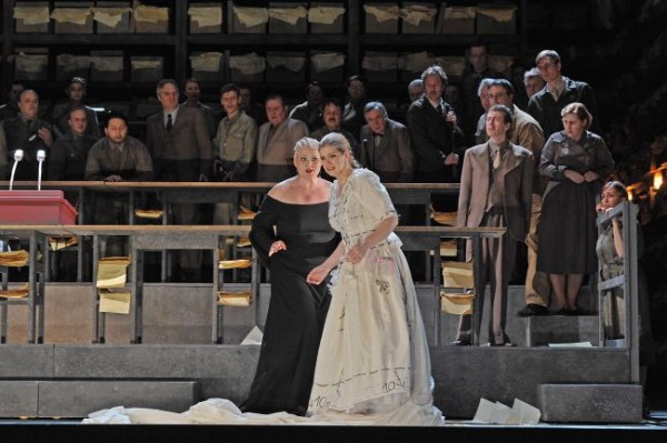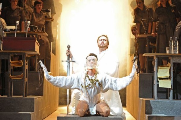 Um Historie geht es nicht zuletzt auch bei Carlos Wagner. Und zwar um das schwärzeste Kapitel der deutschen Geschichte, den Nationalsozialismus, der gerade mit dieser Oper bei den Bayreuther Festspielen 1936 starken Missbrauch trieb. Dabei wendet der Regisseur nicht die Holzhammermethode an, sondern beschränkt sich auf Andeutungen. Unterstützt wird er von Kostümbildner Christof Cremer, der mit der braunen Einkleidung der mit Gewehren bewehrten Brabanter zwar einen deutlichen Bezug zur NS-Zeit herstellt, aber die Uniformen der Nazis nicht original zitiert. Die geistige Parallele ist indes offenkundig. Es machen sich faschistische Auswüchse breit, als deren Folge der Glaube an ein irgendwie geartetes (Grals-) Wunder nur noch bloße Makulatur ist. An die Gottgesandtheit des Titelhelden glaubt eigentlich keiner mehr so richtig. Man sieht ihn ihm nur einen neuen weltlichen Führer, nach dem das Volk aus innerer Not heraus flehend die Hände ausstreckt. Seine Verbindung mit Elsa entspringt letztlich nur politischem Kalkül, ist reine Zweckmäßigkeit und nur auf den Machtgewinn ausgerichtet. Den Kampf mit Telramund, der in gegenseitigem Vorbeilaufen und Anrempeln der beiden Gegner besteht, gewinnt Lohengrin nur mit Hilfe des Schwertes, das ihm Elsa reicht. Im Brautgemach unternimmt der auf einmal im Hintergrund auftauchende und dort ruhig verweilende brabantische Graf keinen Versuch, seinen Kontrahenten zu töten. Lohengrin metzelt ihn dennoch grausam nieder. Das ist alles andere als Notwehr, sondern glatter Mord. Hier erreicht seine Dekonstruktion zum Anti-Helden ihren Höhepunkt. Er geht über Leichen, um seine Macht zu erhalten, was ihn letztlich auch die Liebe Elsas kostet. Das Stellen der verbotenen Frage erscheint als von ihr erkannte letzte Möglichkeit, den unliebsamen Retter, in dem sie sich getäuscht hat, wieder loszuwerden. Dieser gibt die Macht am Ende an den jungen Herzog Gottfried ab, der als Schwan bereits durchaus überzeugend die Gestalt eines in Ketten gelegten Jugendlichen hatte. Ob er einen starken Herrscher abgeben wird, ist aber recht zweifelhaft. Eher nicht.