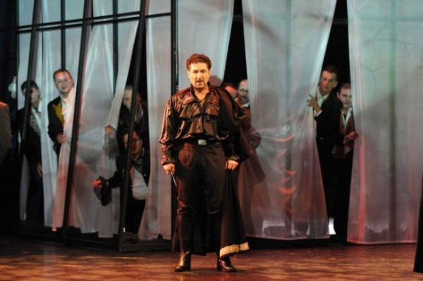 Die eher spärliche Ausstattung leistet einer exakten Figurenkonstellation Vorschub. Nichts lenkt von den Beziehungen der Handlungsträger untereinander ab. Vogels Regie bewegt sich insgesamt in konventionellen Bahnen, und auch die Führung der Personen hätte an manchen Stellen etwas stringenter ausfallen können. Aber was die Erzeugung von einfühlsamen Stimmungen in Form von Licht- und Schattenspielen angeht, ist er ein Meister seines Fachs. Solche gibt es in seiner Inszenierung reichlich. Sie verleihen der Produktion eine ganz eigene Ästhetik. So macht es beispielsweise einen tiefen Eindruck, wenn die Schatten der Stützpfeiler der transparenten Gardinen, durch die die Umrisse der einzelnen Personen oft schemenhaft durchschimmern, Gitterstäbe bilden. Diese eindrucksvolle visuelle Impression ist indes weniger real, sondern vielmehr symbolisch zu begreifen. Sie intendiert den Blick in die tiefsten Gründe der menschlichen Seele und macht deutlich, dass die Bestimmung des Menschen ein Gefängnis ist, aus dem kein Entkommen möglich ist. Alles ist vorbestimmt. Das offenbart sich am Ende mit unbarmherziger Konsequenz, wenn Ulrica als das Schicksal in Person hinter dem sterbenden König erscheint. Dieser geistige Überbau, den Vogel seiner Inszenierung angedeihen ließ, war durchaus überzeugend und insgesamt ansprechend umgesetzt.